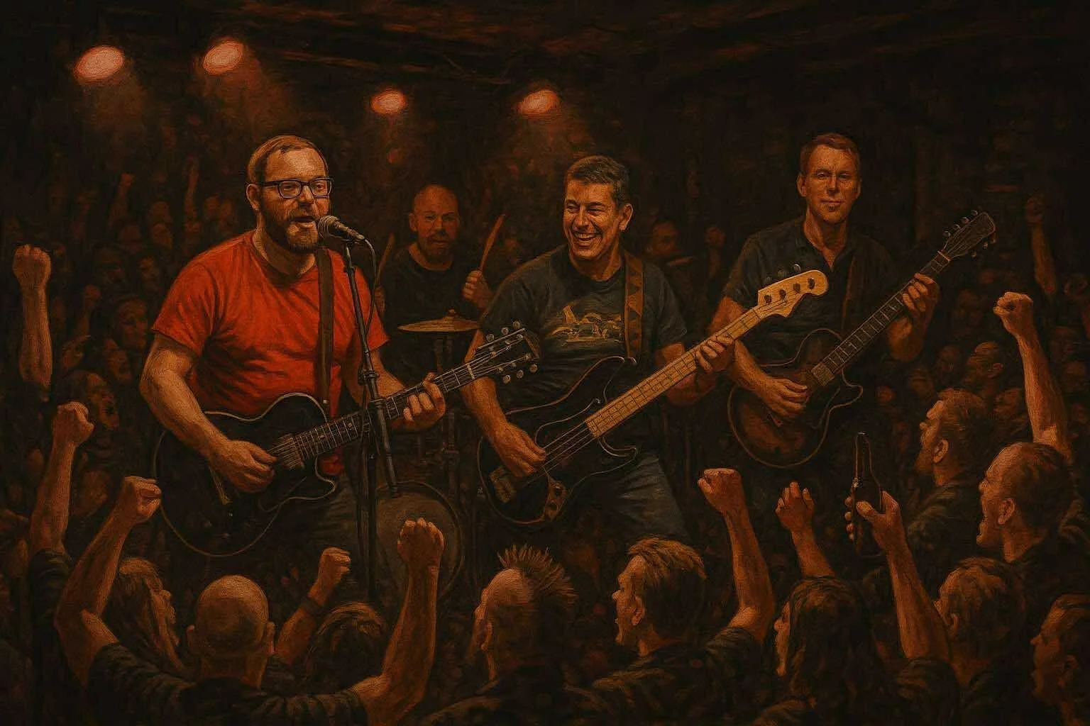 Fire karer i sin beste alder, fire historier – og ett felles mål: å levere ekte, ujålete punkrock’n’roll som treffer både i mellomgulvet og i smilebåndet. Bandet består av Arne, en hardtarbeidende låtskriver, feier og gitarist/vokalist som leverer tekster fulle av trøkk, humor og hverdagslige betraktninger – alltid med en snev av sot under neglene. Ved siden av ham står Ola, anleggsgartneren som aldri sier nei til en ny utfordring. Han hamrer løs på trommene med samme kraft og presisjon som når han lager grunnmurer og støttemurer på dagtid. Et skikkelig arbeidsjern – både bak settet og i livet.
